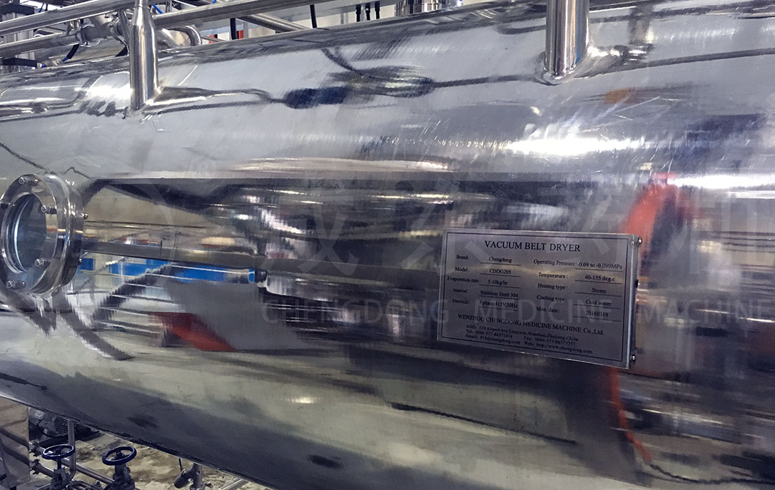 真空帶式干燥機(jī)可以實(shí)現(xiàn)較低溫度下連續(xù)干燥生產(chǎn),實(shí)現(xiàn)真空條件下連續(xù)進(jìn)料和出料,適用于各種液體和高粘度原料的干燥,特別適用于熱敏性要求高的產(chǎn)品干燥,不破壞物料有效成份,例如中藥浸膏、各類植物提取物、低聚果糖、速溶茶粉等,廣泛應(yīng)用于制藥、食品、化工、生物制品等其它行業(yè)。